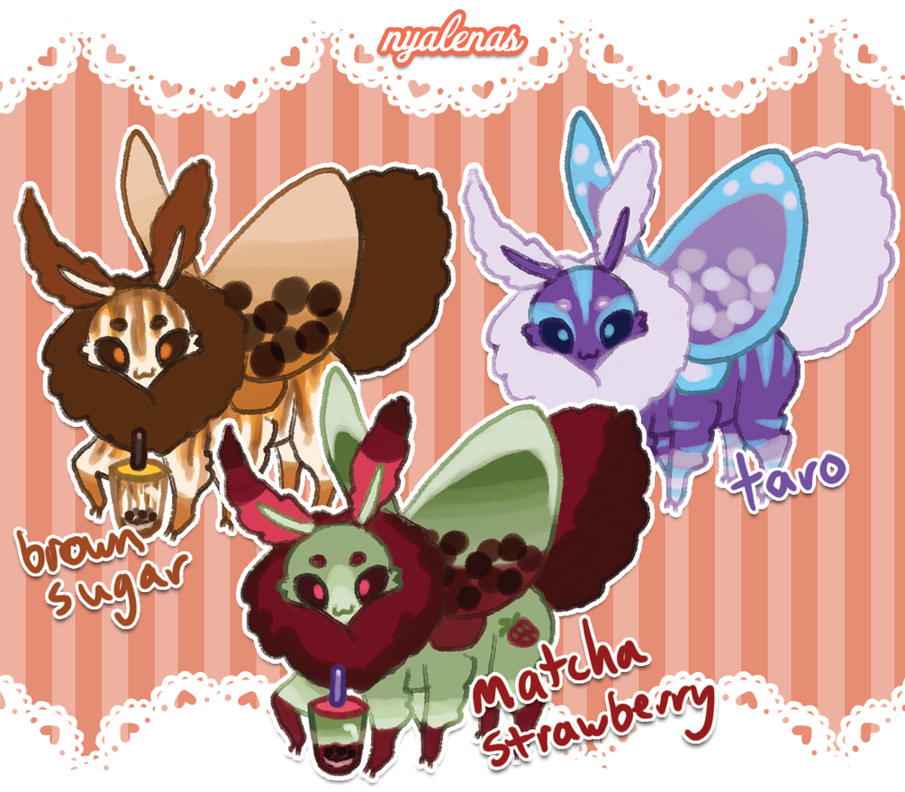 Three adorable nyalenas based on some of my favorite boba drinks!